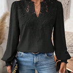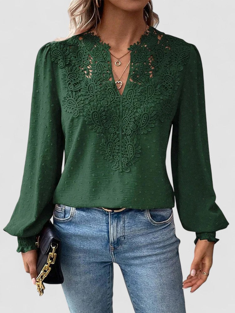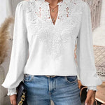 Charlene – Bluză de Damă Elegantă cu Decolteu în V și Mâneci Lungi