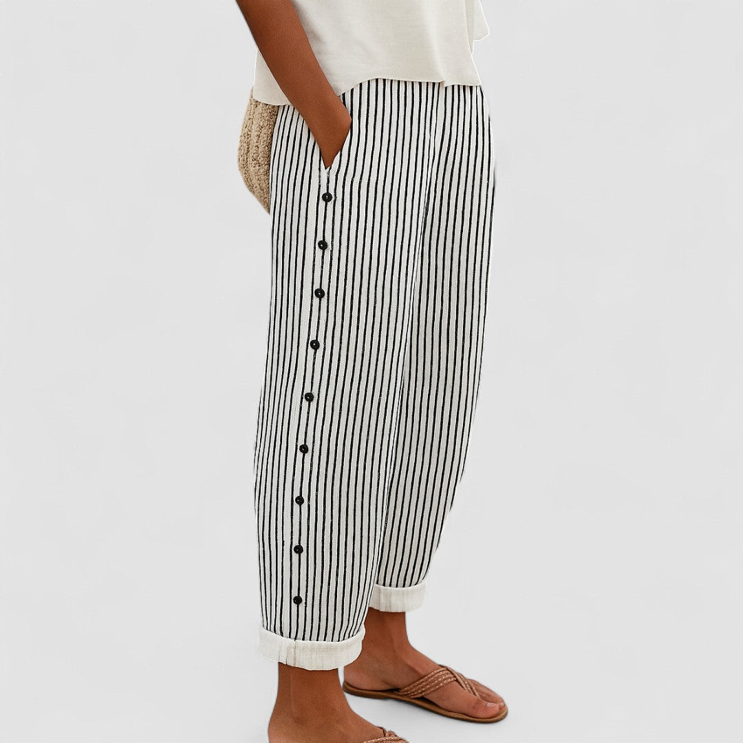 Caitlin | Pantaloni cu Butoni și Dungi Eleganți