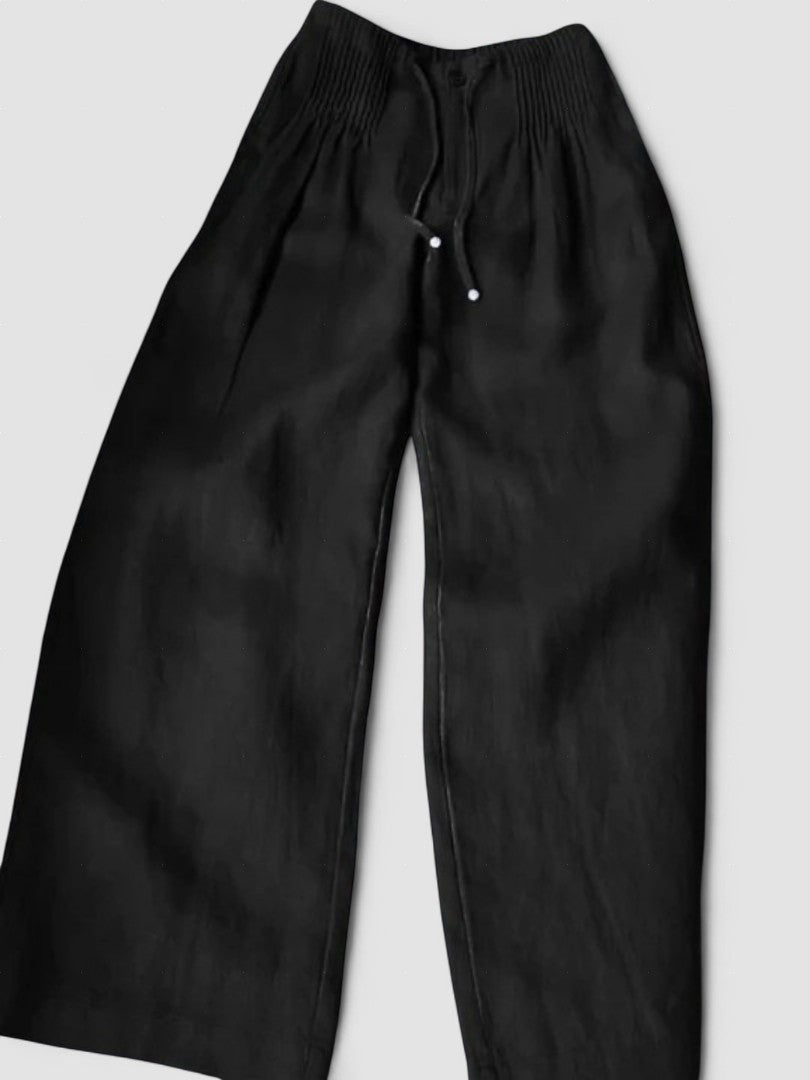 Camille | Pantaloni cu Picior Larg din Amestec de Bumbac și In