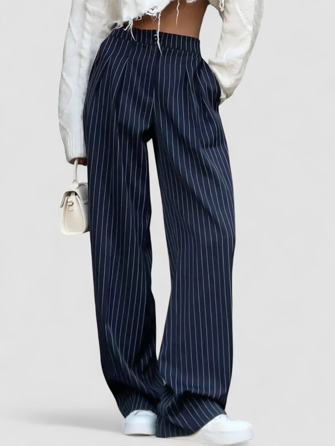 Pantaloni de birou cu pliuri și picior larg cu dungi