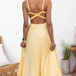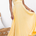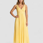 Alva – Rochie de Damă Midi Plisată cu Decolteu în V Galbenă