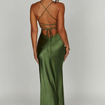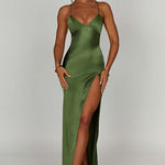 Amara – Rochie de Damă Maxi Satin Elegantă cu Fisură