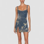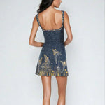 Bluvera – Rochie Mini de Damă Elegantă Albastră cu Imprimeu Cosmic