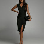 Celina – Rochie de Cocktail Plisată cu Decolteu în V