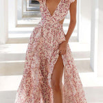 Isadora – Rochie Maxi de Damă cu Mâneci Volan și Decupaje