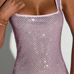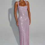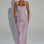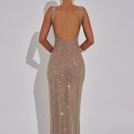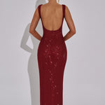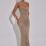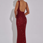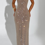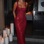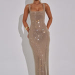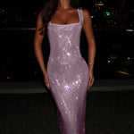 Sariel – Rochie Maxi Strălucitoare Bodycon cu Decolteu Pătrat