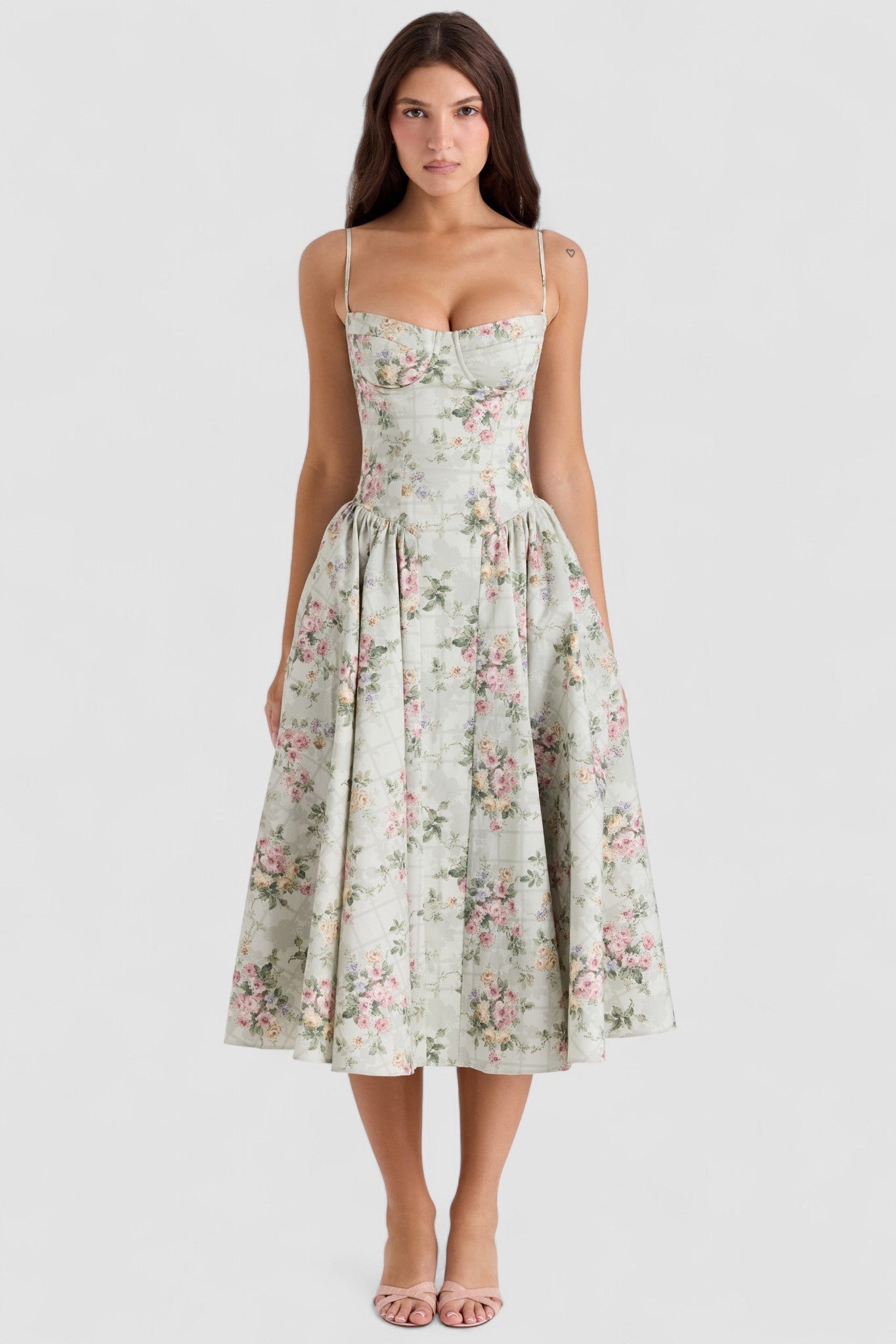 Coralie – Rochie de Damă Midi Florală cu Corset