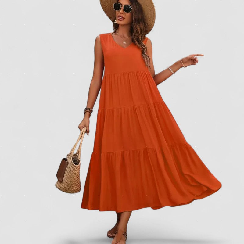 Elvira – Rochie de Damă Midi Elegantă Lejeră fără Mâneci