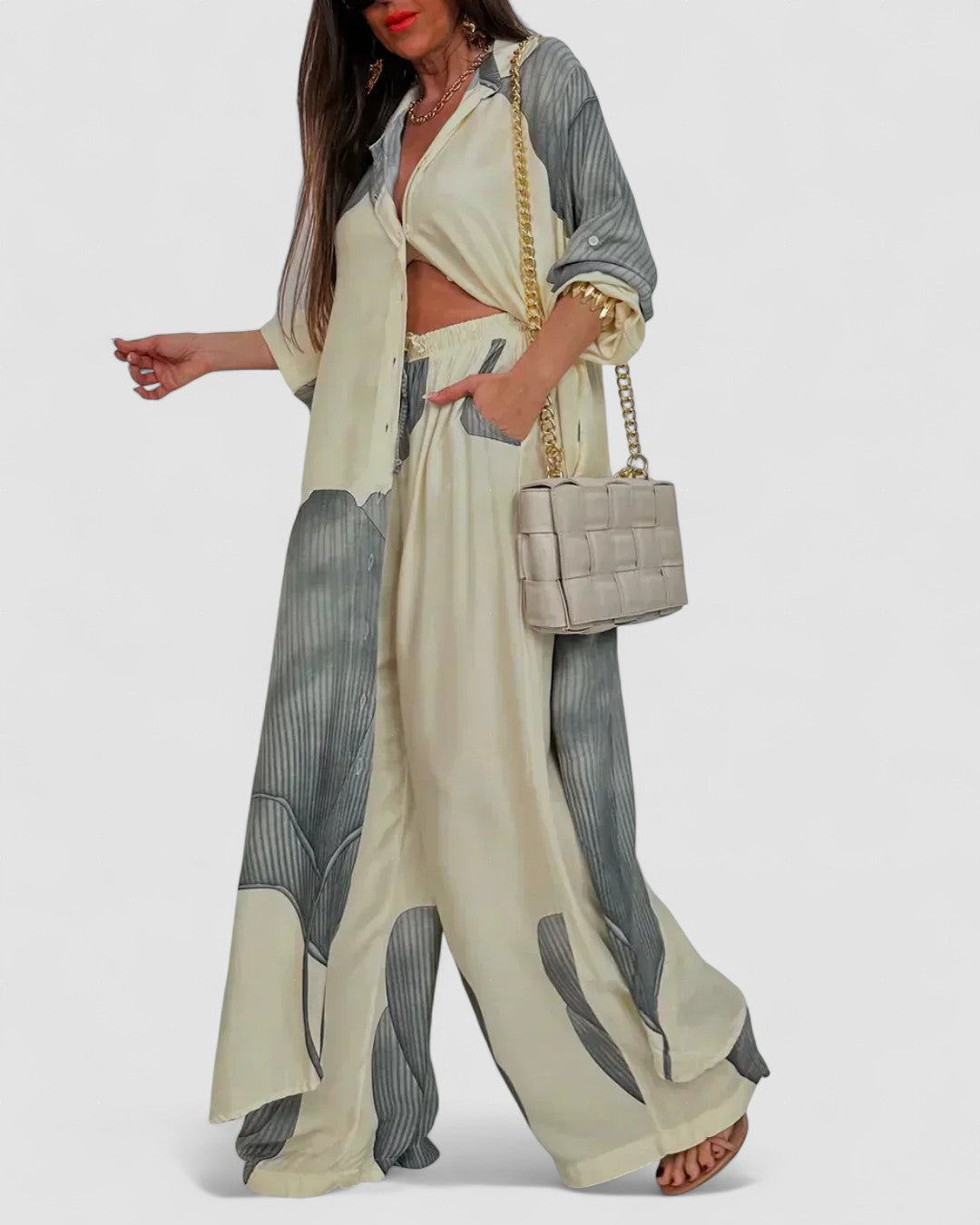 ISABEAU – SET TOP CU PRINT PATCHWORK TENDENȚĂ ȘI PANTALONI LARGI