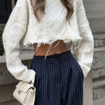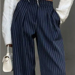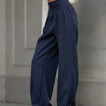 Pantaloni de birou cu pliuri și picior larg cu dungi