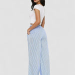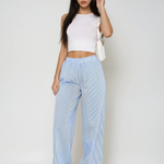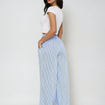 Pantaloni largi cu talie înaltă elastici, cu dungi