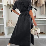 Luise – Rochie de Damă Denim Elegantă cu Detalii Strălucitoare