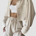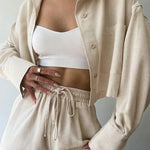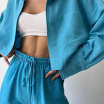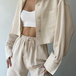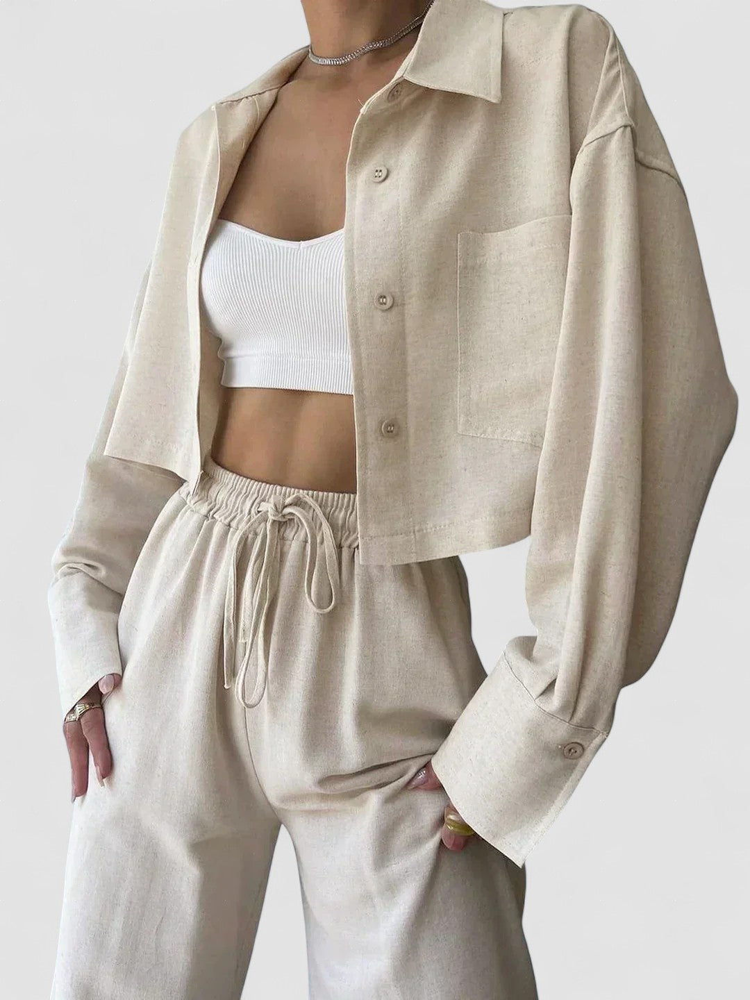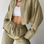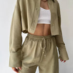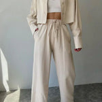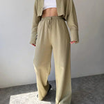 Set de pantaloni din două piese cu guler și șnur, casual
