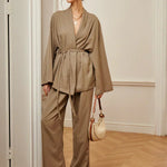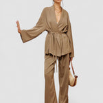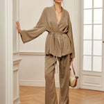 Set de Pantaloni Șifonați cu Curea pentru Îmbrăcăminte Casual