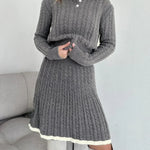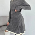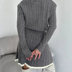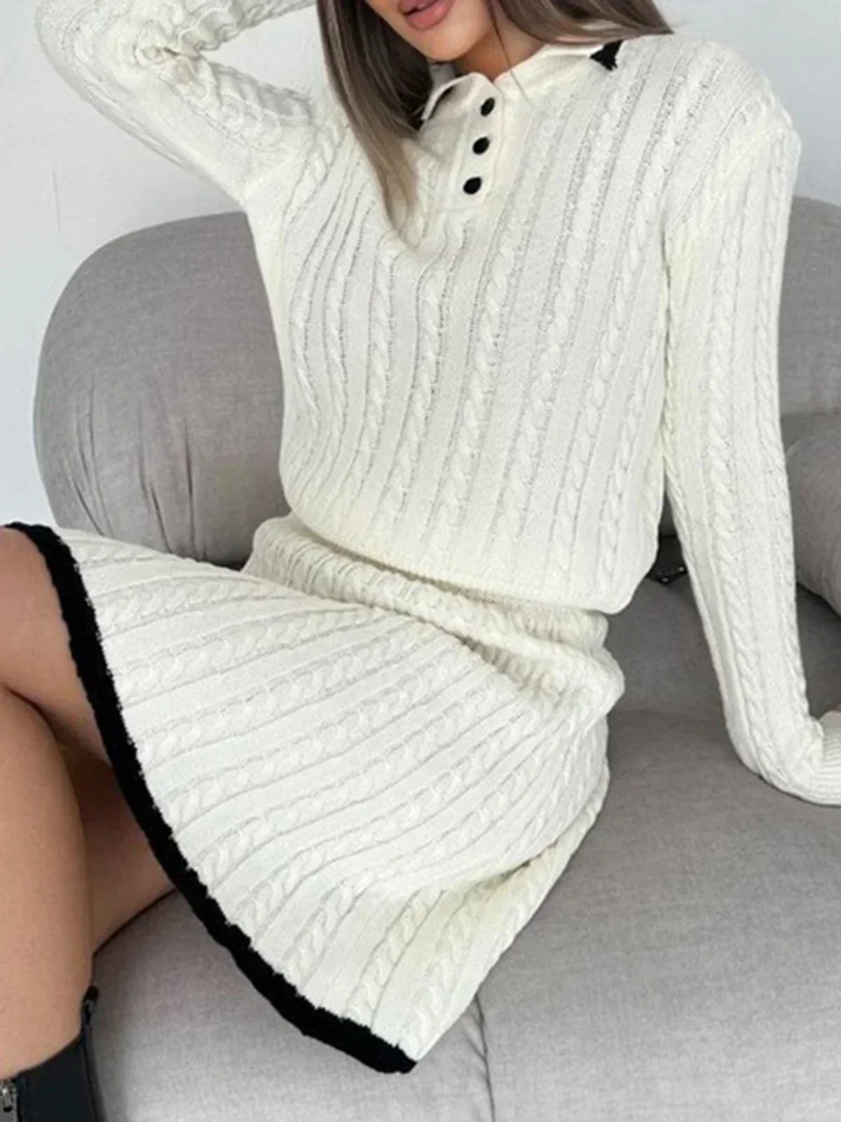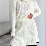 Set fustă cu rever și tricotat în cablu