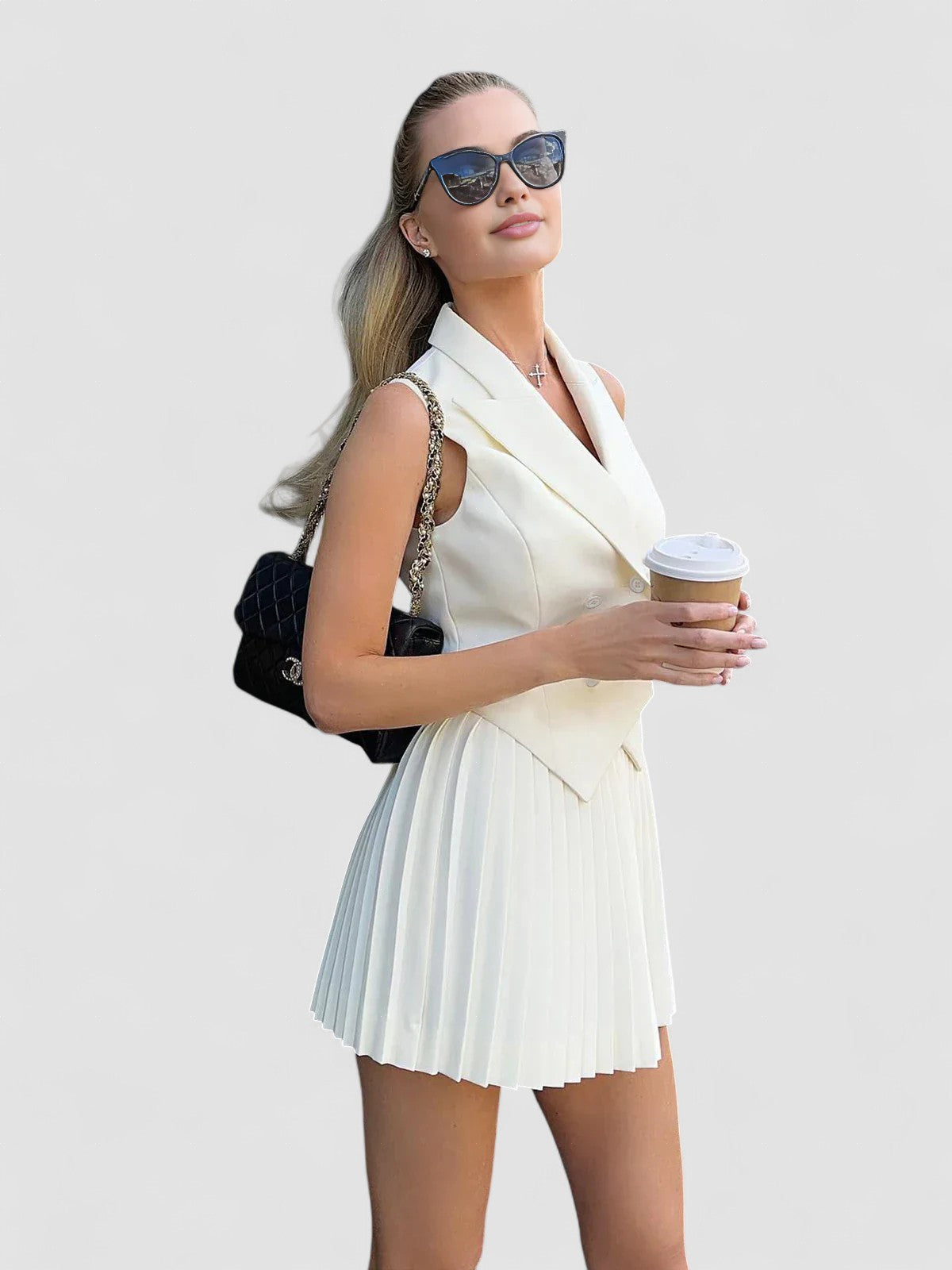 Set Vestă și Fustă Mini Plisată